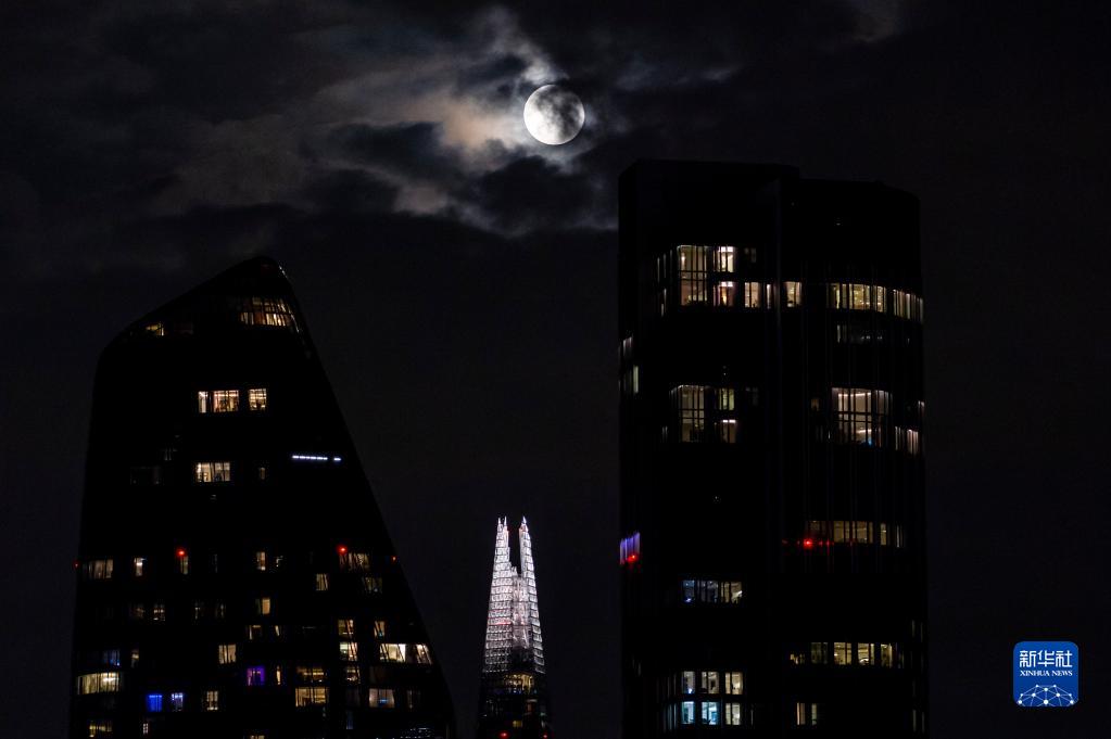 9月21日,滿(mǎn)月在英國倫敦的“碎片大廈”上空升起。