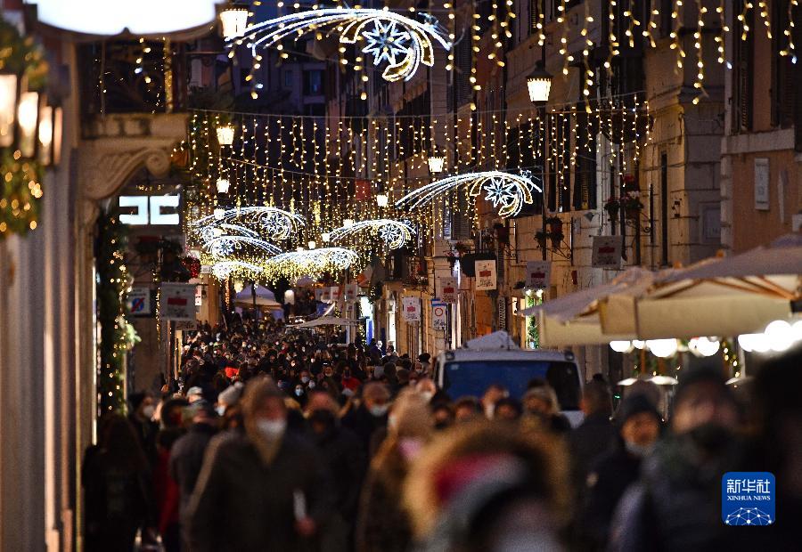 12月11日,意大利羅馬一處街道被節日彩燈裝點(diǎn)。圣誕節將至,意大利首都羅馬被圣誕樹(shù)和彩燈裝點(diǎn),節日氣氛濃郁。 新華社記者金馬夢(mèng)妮攝