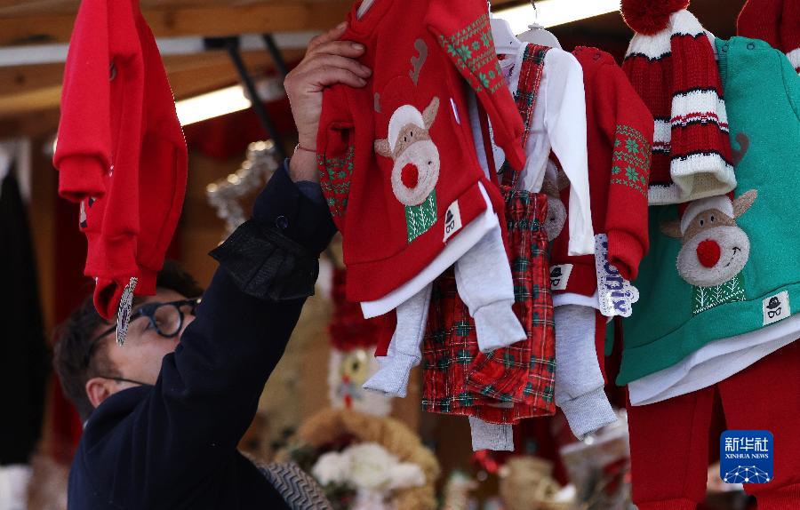 12月9日,一名男子在法國巴黎的一處圣誕市場(chǎng)挑選節日商品。 新華社記者 高靜 攝