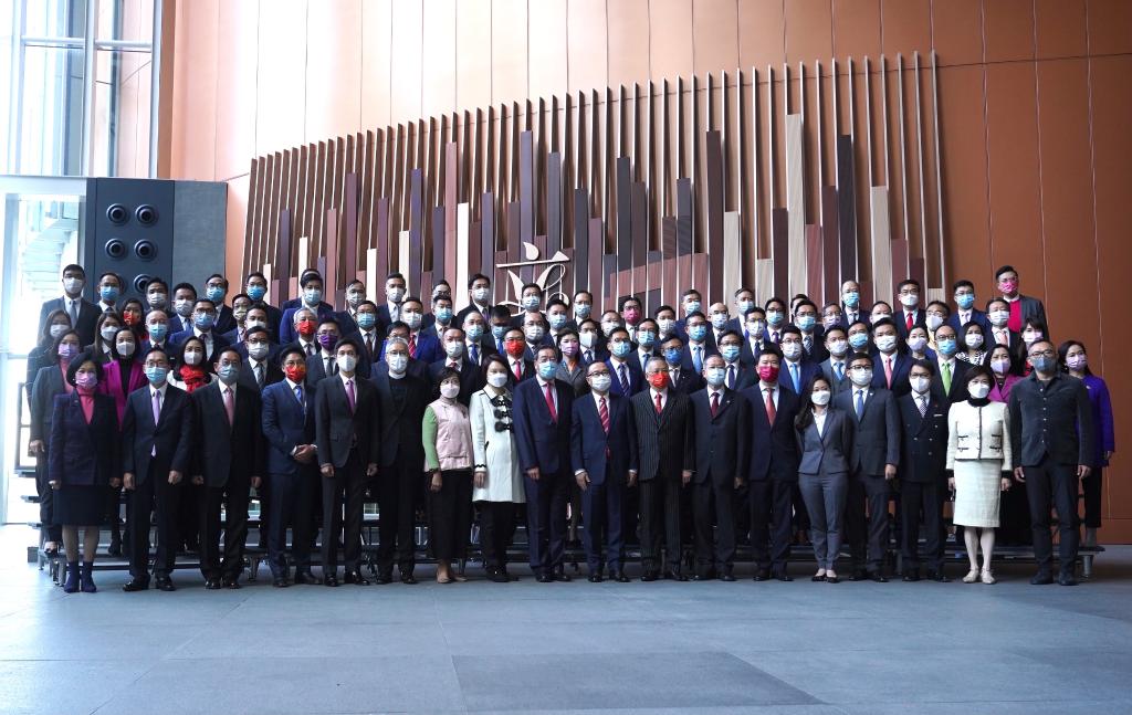 1月3日11時(shí)許,香港特區第七屆立法會(huì )90位議員開(kāi)始宣誓。這是議員在儀式后合影。新華社記者 呂小煒 攝