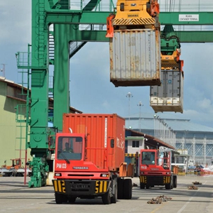 這是2022年1月1日拍攝的正在進(jìn)行集裝箱裝卸作業(yè)的文萊摩拉港碼頭。(新華社發(fā),杰弗里·黃攝)