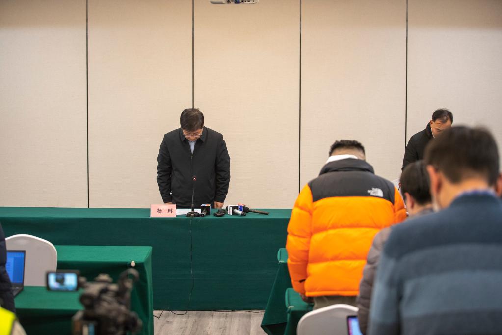 1月8日凌晨,在重慶市武隆區食堂坍塌事故新聞通氣會(huì )上,與會(huì )者為事故遇難者默哀。新華社記者 黃偉 攝