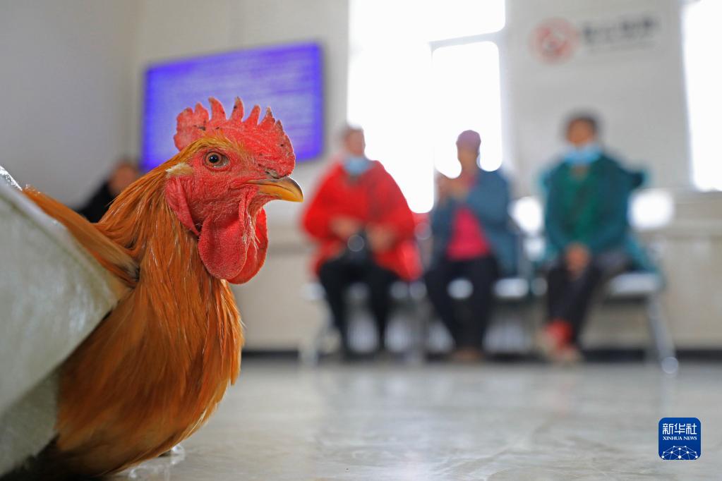 1月15日,在遼寧省鳳城市石城站,農民帶著(zhù)準備售賣(mài)的公雞在候車(chē)室休息。