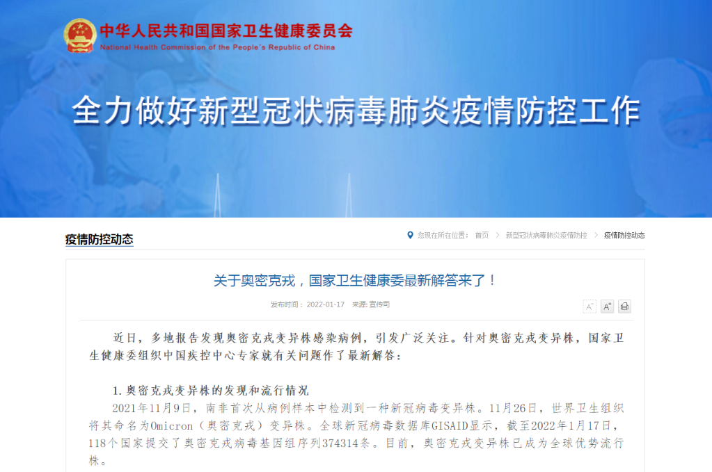 新華社北京1月17日電? 題:奧密克戎已成全球優(yōu)勢流行株 國家衛健委最新解答來(lái)了!