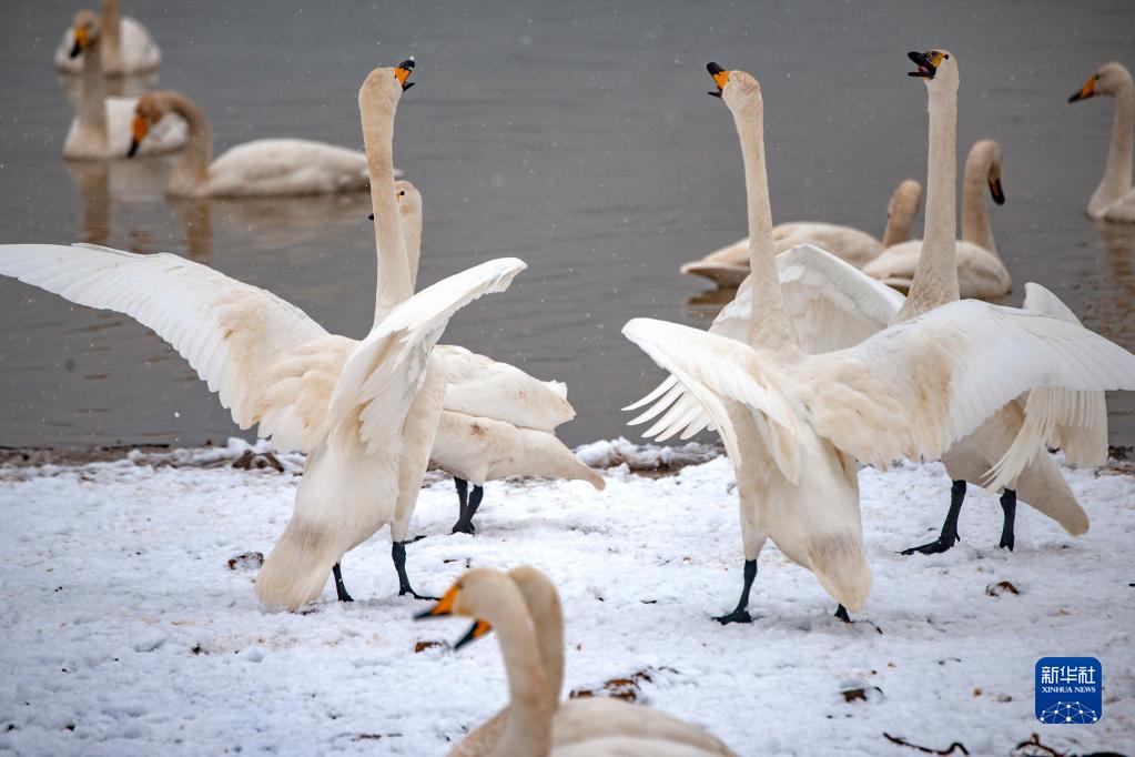 這是2022年1月23日在河南三門(mén)峽天鵝湖國家城市濕地公園拍攝的白天鵝。