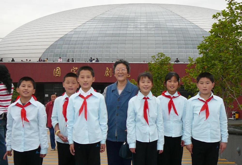 這是鄧小嵐和馬蘭小樂(lè )隊成員在國家大劇院前的合影(2008年10月4日攝)。新華社發(fā)