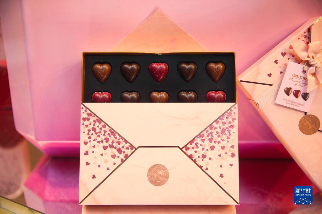 這是2月8日在比利時(shí)布魯塞爾的一家商店拍攝的“情人節”主題巧克力。