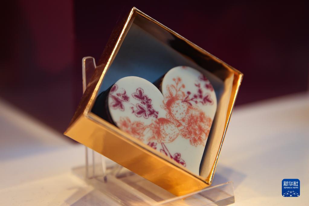 這是2月8日在比利時(shí)布魯塞爾的一家商店拍攝的“情人節”主題巧克力。