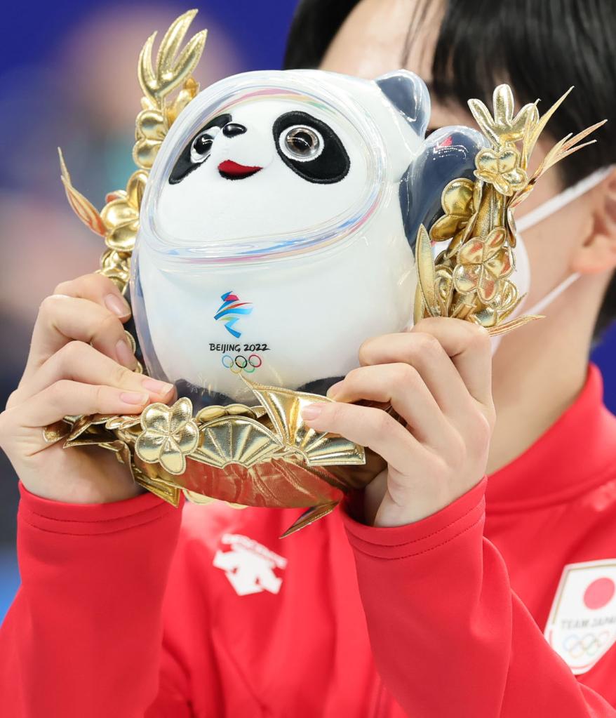 2月7日在頒發(fā)禮品儀式上拍攝的北京2022年冬奧會(huì )吉祥物“冰墩墩”。(新華社記者 蘭紅光 攝)