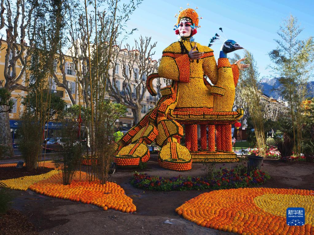這是2月9日在法國南部小城芒通拍攝的檸檬節藝術(shù)裝置。