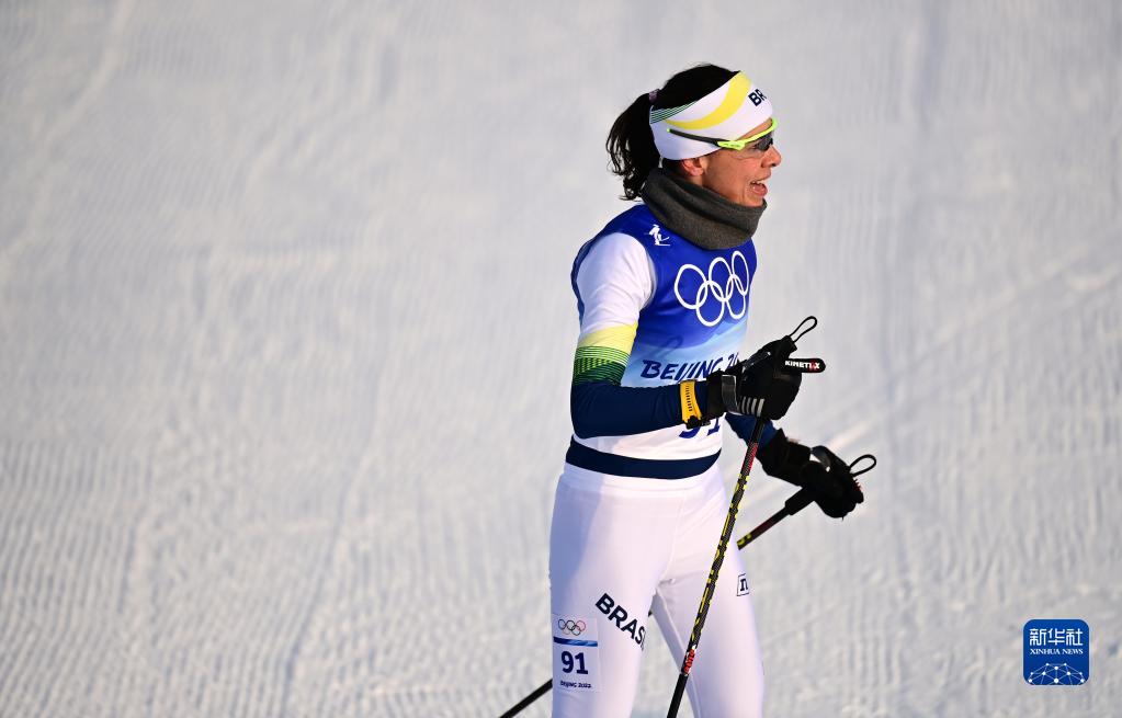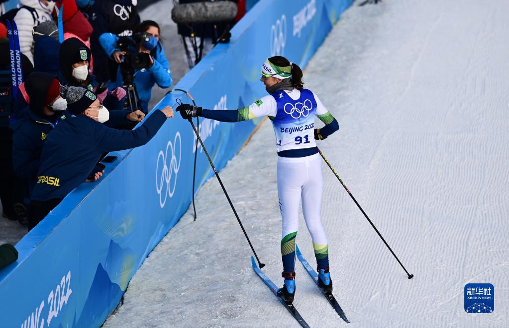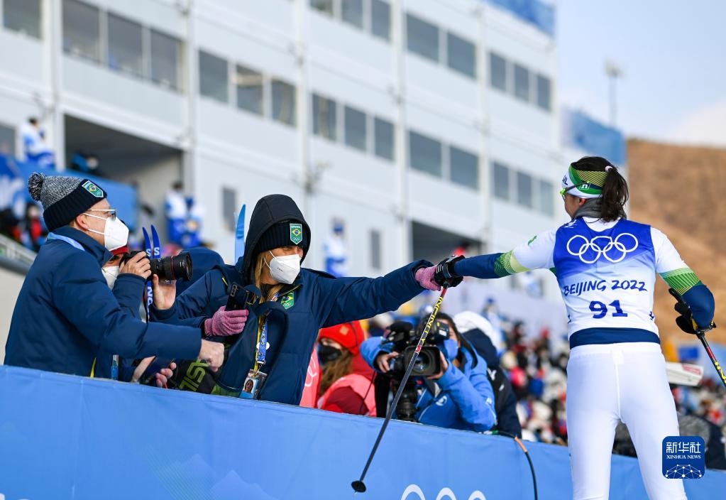 在北京冬奧會(huì )張家口賽區國家越野滑雪中心,雅克利娜·莫朗與巴西隊工作人員、隊友相互致意(2月10日攝)。新華社記者 胡虎虎 攝