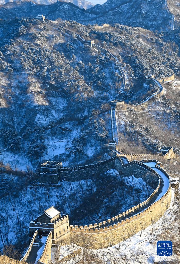 近日,北京迎來(lái)降雪天氣。雪后的慕田峪長(cháng)城猶如長(cháng)龍臥于銀裝素裹的山脊,蔚為壯觀(guān)。