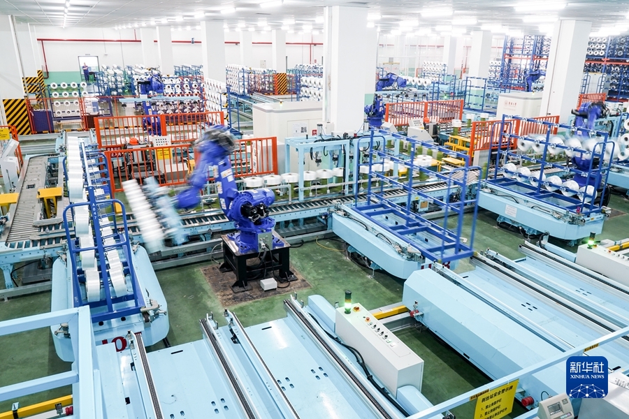 2021年5月14日,在位于江蘇省蘇州市吳江區盛澤鎮的一家智能車(chē)間,機器人在車(chē)間內自動(dòng)作業(yè)。新華社記者 李博 攝