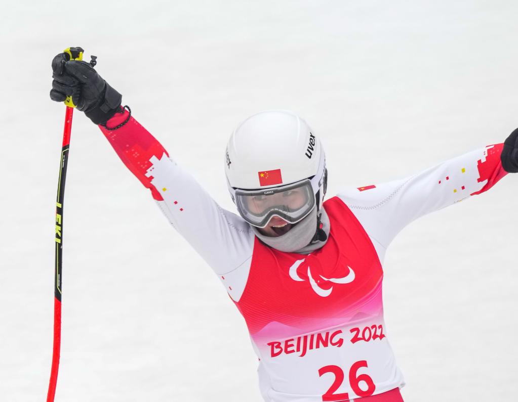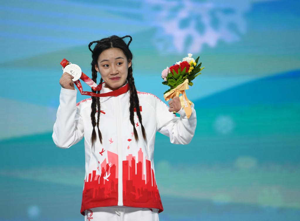 3月12日,殘奧高山滑雪女子回轉(站姿)比賽中,張夢(mèng)秋贏(yíng)得銀牌