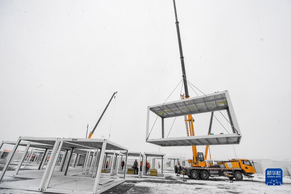 惡劣的天氣,阻擋不了“中國速度”。施工現場(chǎng),各種大型機械馬力全開(kāi),正火速把一個(gè)個(gè)公共汽車(chē)大小的白色方艙有序組合起來(lái)。