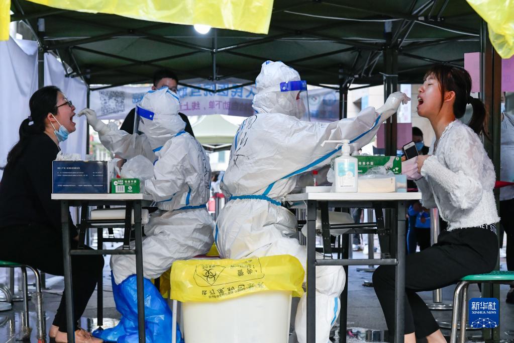 3月13日,在深圳羅湖區向西村核酸檢測點(diǎn),醫務(wù)人員為居民進(jìn)行核酸采樣。新華社發(fā)(儲焱攝)