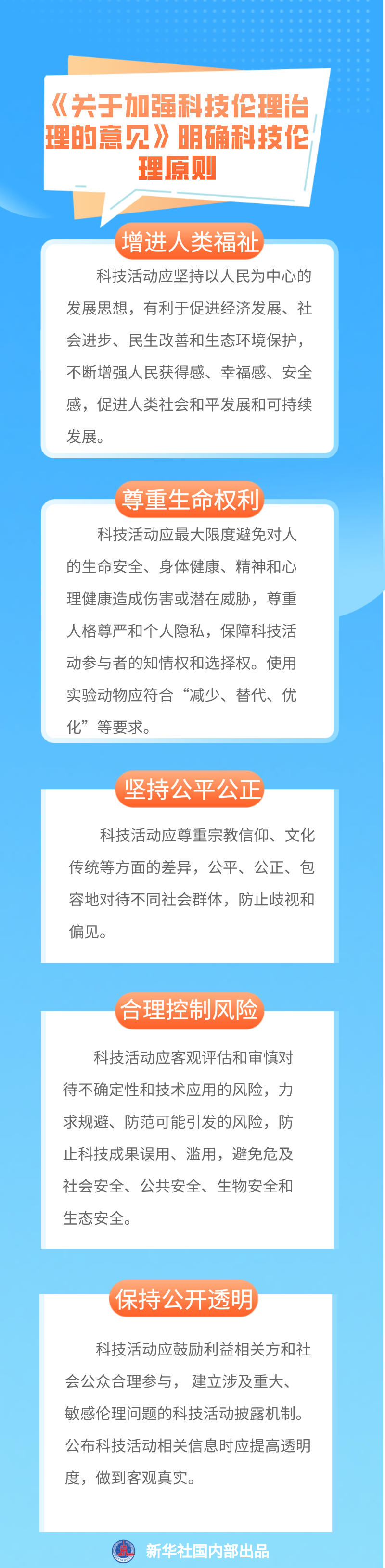此次兩辦印發(fā)的意見(jiàn)不僅提出了“倫理先行、依法依規、敏捷治理、立足國情、開(kāi)放合作”的科技倫理治理要求,更明確了“增進(jìn)人類(lèi)福祉、尊重生命權利、堅持公平公正、合理控制風(fēng)險、保持公開(kāi)透明”的科技倫理原則。