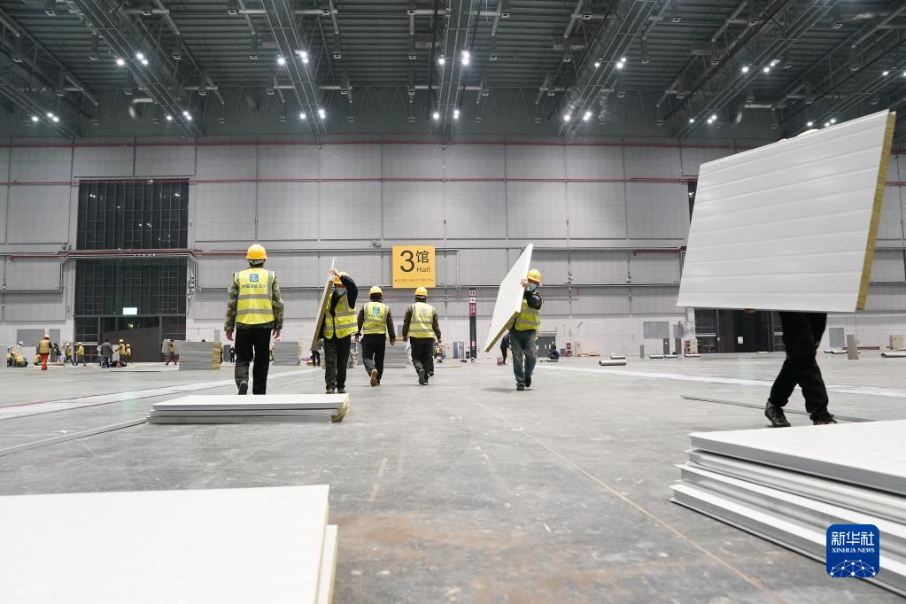 4月5日,工人在國家會(huì )展中心(上海)內作業(yè)。新華社記者 丁汀 攝
