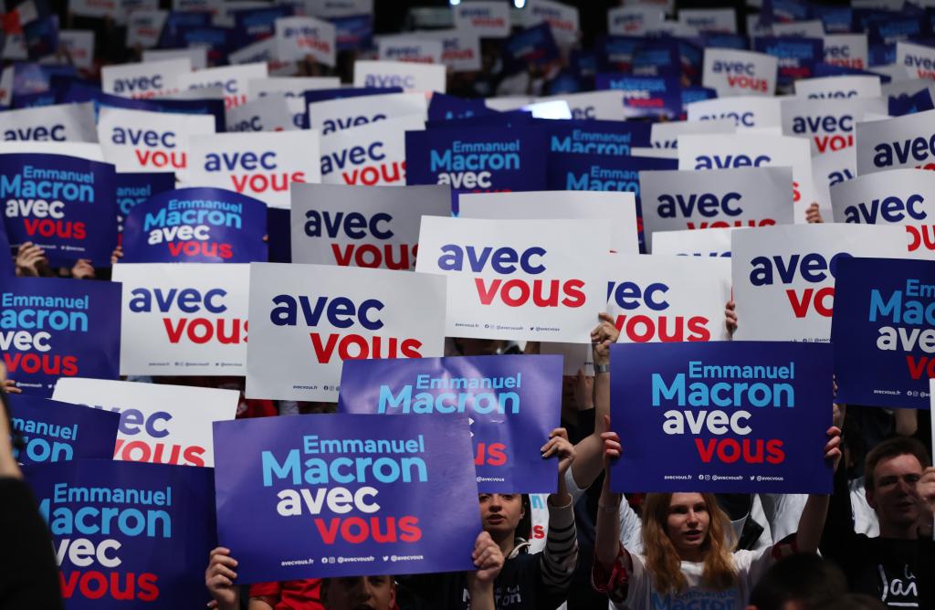 4月2日,支持者在法國巴黎附近的拉德芳斯體育館參加馬克龍競選集會(huì )。新華社記者高靜 攝