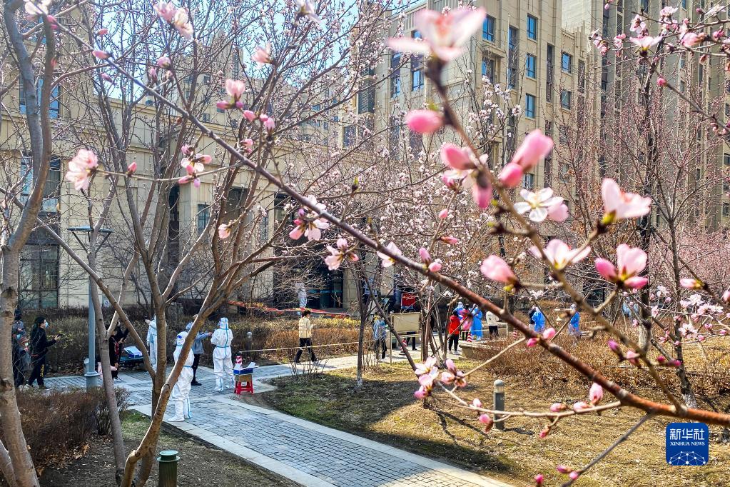 4月14日,在長(cháng)春市一處管控小區,居民有序排隊接受核酸采樣。?新華社記者 許暢 攝
