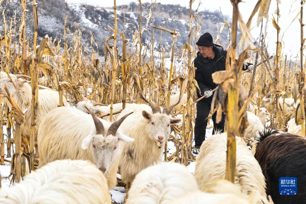 在山西省汾西縣僧念鎮段村,脫貧戶(hù)蔡文明在山上放羊(1月27日攝)。新華社記者 柴婷 攝