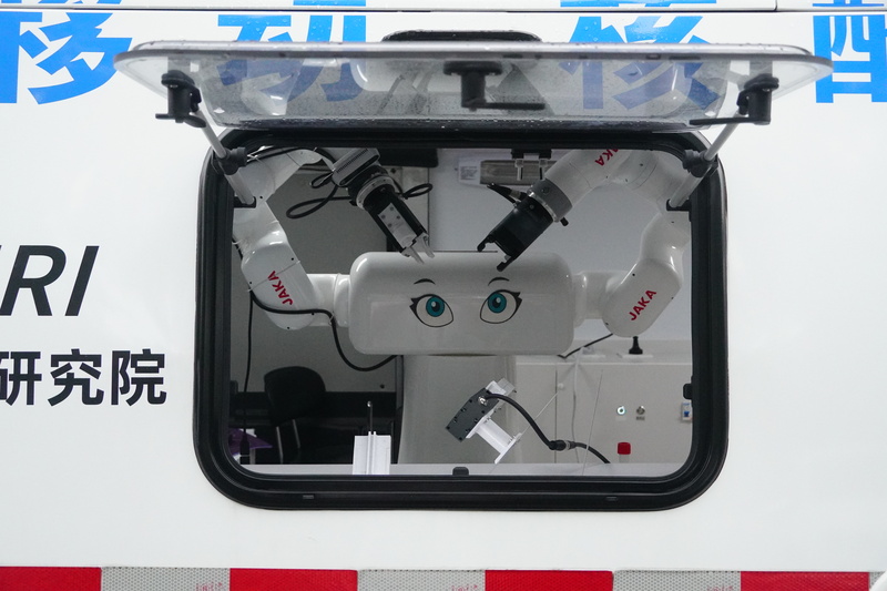 在市經(jīng)信委的指導下,上海人工智能研究院智慧醫療中心首席科學(xué)家、上海交通大學(xué)機械與動(dòng)力工程學(xué)院副研究員閆維新與節卡機器人技術(shù)團隊合作,在很短時(shí)間內研制出雙臂機器人及其配套設備?!拔覀冇玫臋C械臂是節卡MiniCobo協(xié)作機器人,電爪是從公司展廳的機器人身上拆下來(lái)的。其他設備大多是3D打印出來(lái)的,等完全復工后,我們再開(kāi)模具、做機械加工?!遍Z維新指著(zhù)核酸采樣車(chē)內的機器人說(shuō)。