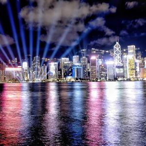 這是6月25日在香港尖沙咀拍攝的香港島燈光秀。新華社記者 王申 攝