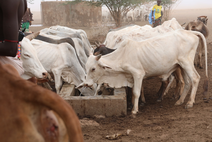 該郡萊薩米斯地區的一處大型飲水點(diǎn),是地區內約1000名牧民和數萬(wàn)頭牲畜賴(lài)以生存的水源。大批牛群和羊群從各方趕赴這里,牧民們不斷使用長(cháng)棍驅趕牲畜以維持秩序。