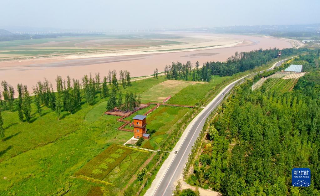 這是2022年8月10日在河南省三門(mén)峽市拍攝的黃河生態(tài)廊道(無(wú)人機照片)。新華社記者 郝源 攝