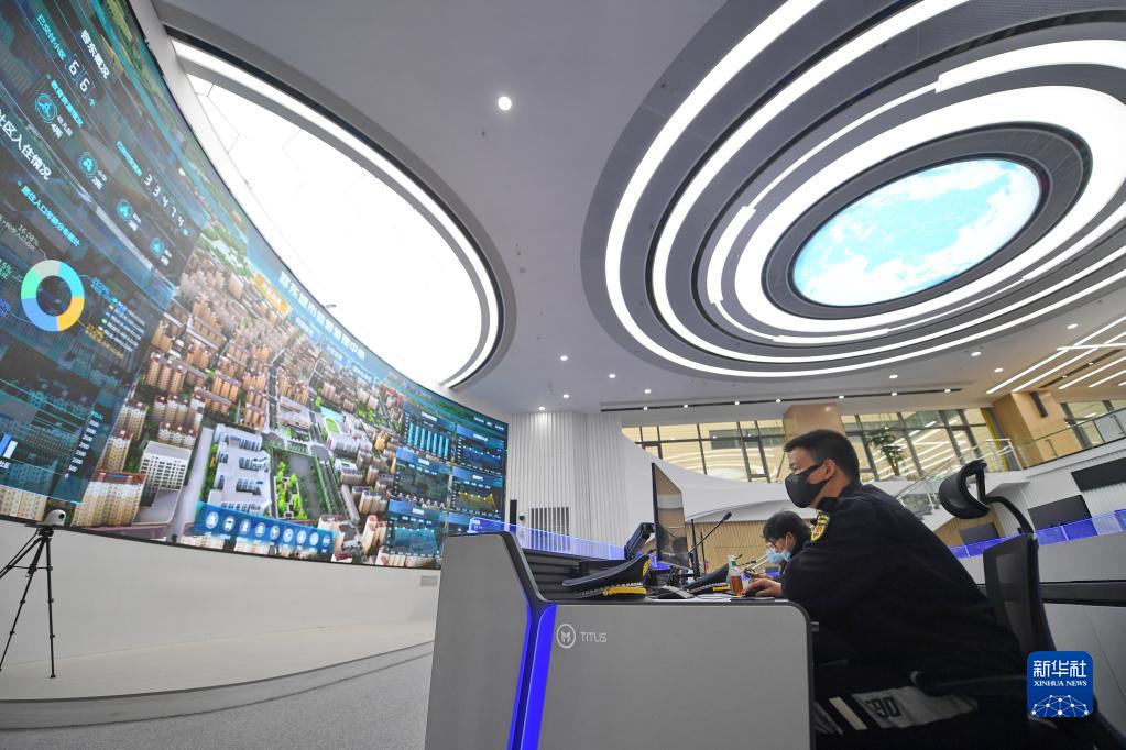 2022年3月29日,工作人員在雄安新區容東城市運營(yíng)管理中心監管平臺工作。新華社記者 朱旭東 攝