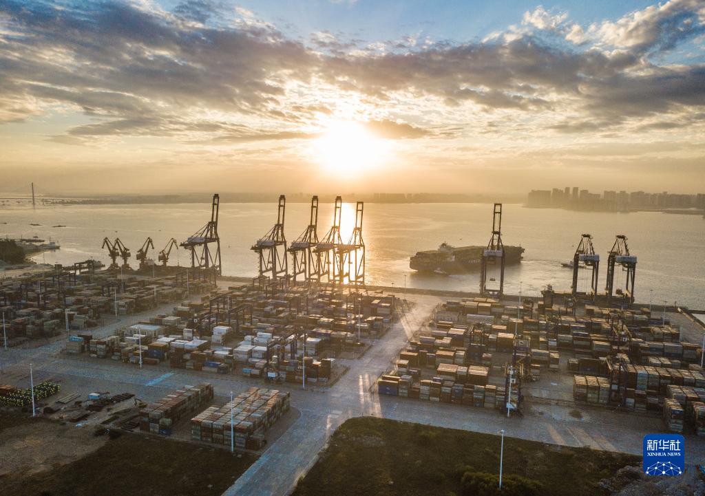 這是2021年12月5日清晨在海南自貿港重點(diǎn)園區洋浦經(jīng)濟開(kāi)發(fā)區拍攝的洋浦國際集裝箱碼頭(無(wú)人機照片)。新華社記者 蒲曉旭 攝