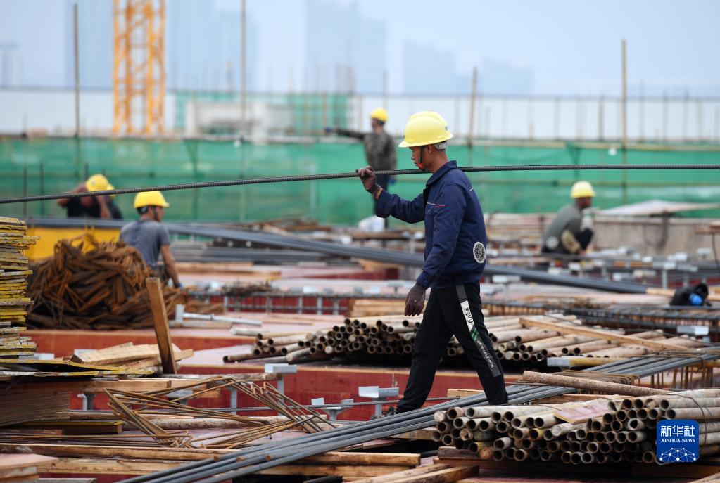 9月20日,工人在南寧國際鐵路港電商物流區施工。