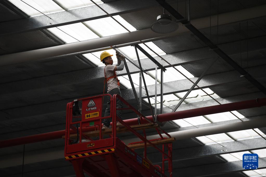 9月20日,工人在南寧國際鐵路港電商物流區施工。