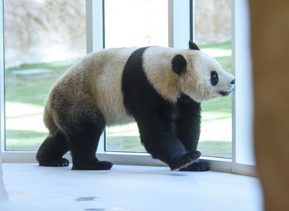 10月19日,大熊貓走在位于卡塔爾首都多哈的豪爾熊貓館內。新華社發(fā)(尼庫攝)