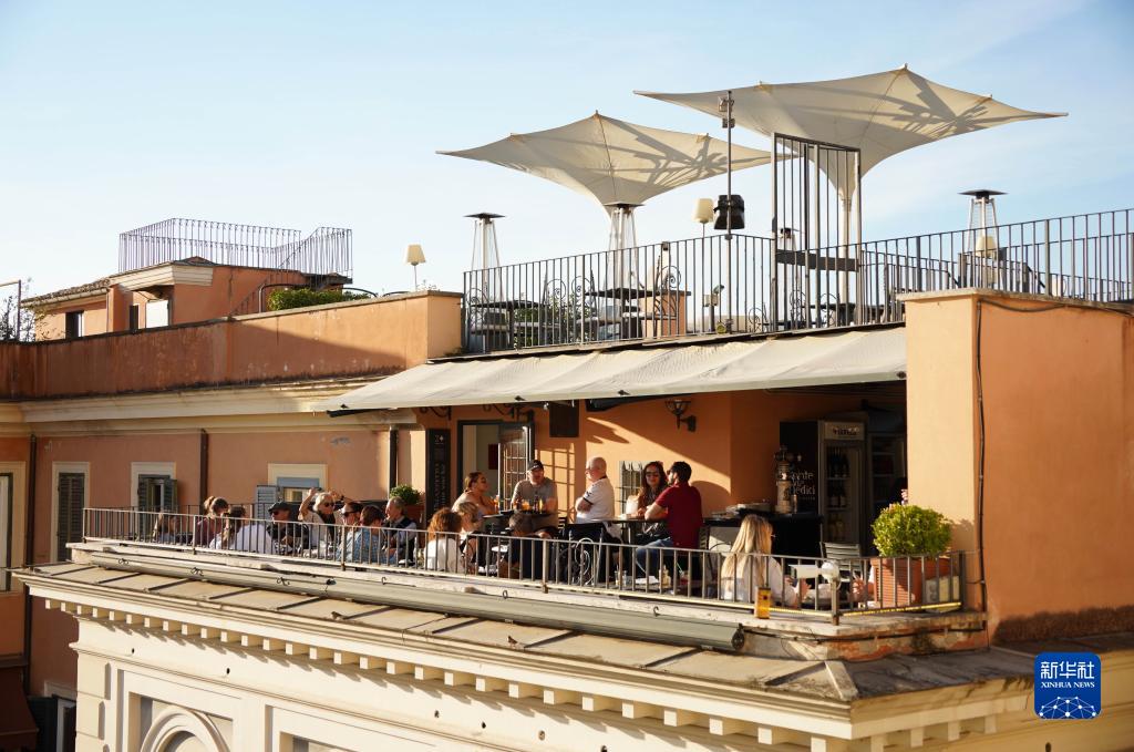 11月11日,人們在意大利羅馬一處酒吧的戶(hù)外區域休閑。
