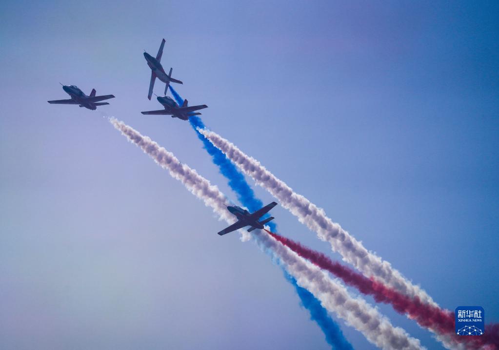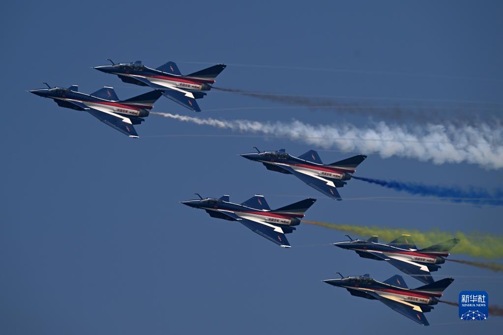 11月13日,第十四屆中國航展閉幕當天,空軍八一飛行表演隊進(jìn)行飛行表演。新華社發(fā)(余紅春 攝)