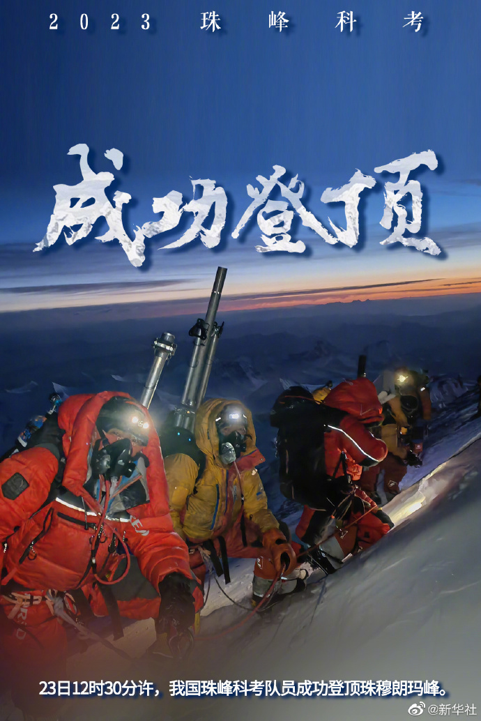 這是我國珠峰科考繼2022年之后,再次突破8000米以上海拔高度。當日,科考隊員在珠峰峰頂利用科學(xué)儀器,采集珠峰峰頂的雪冰樣品,用于分析氣候環(huán)境指標。