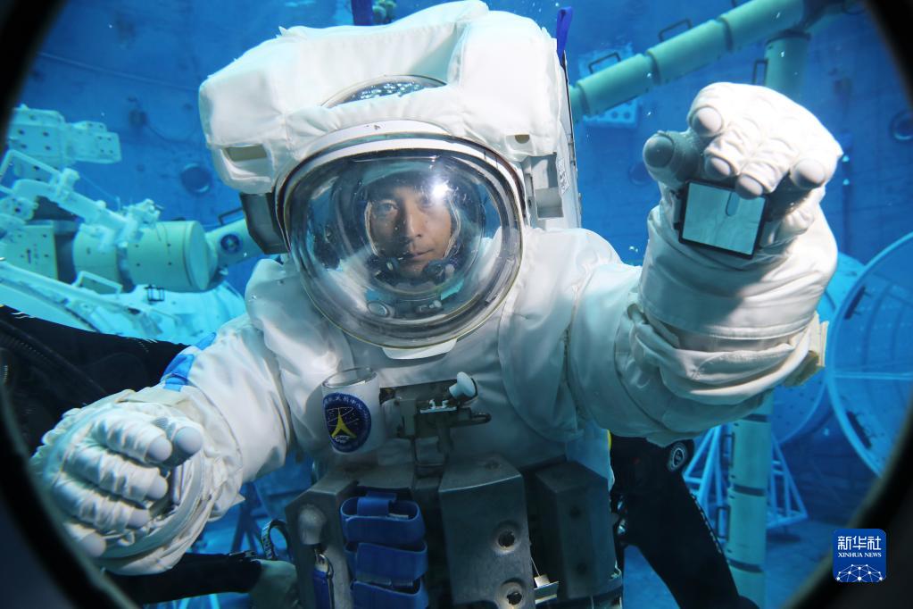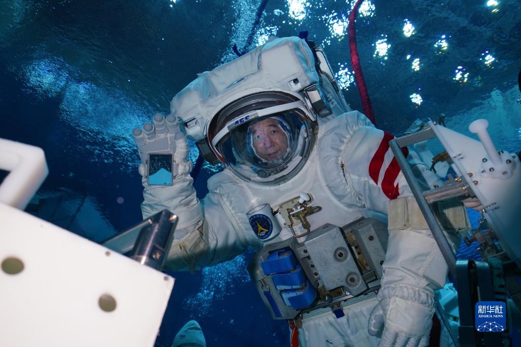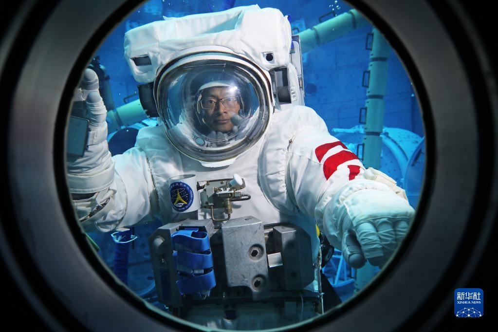 神舟十六號航天員景海鵬進(jìn)行水下訓練(2023年3月16日攝)。新華社發(fā)(孔方舟 攝)