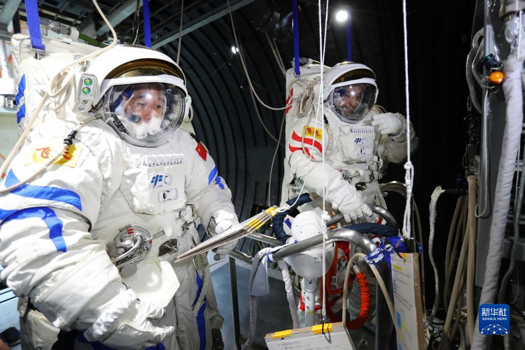 神舟十六號航天員乘組進(jìn)行航天服操作訓練(2022年10月19日攝)。新華社發(fā)(徐部 攝)