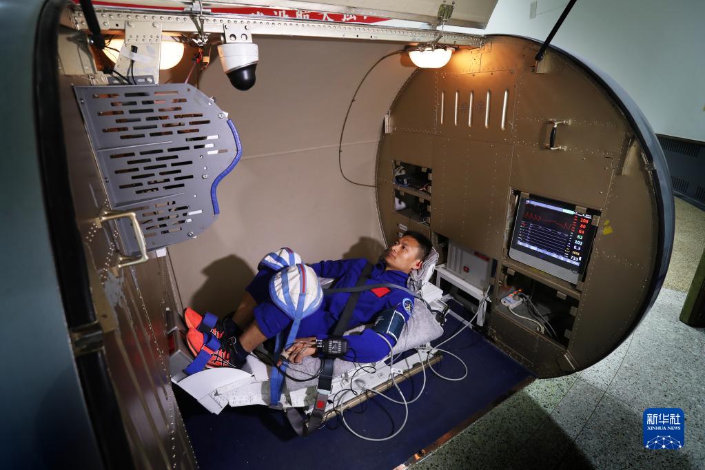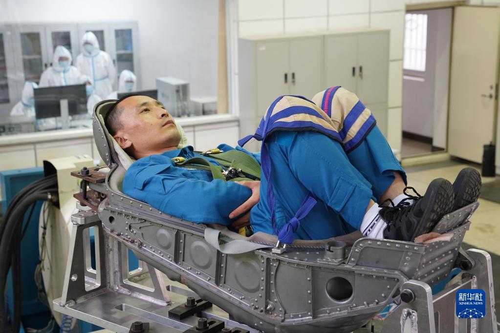 神舟十六號航天員朱楊柱在進(jìn)行振動(dòng)體驗(2022年4月27日攝)。新華社發(fā)(王夏陽(yáng) 攝)
