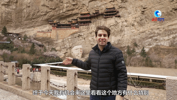 外國留學(xué)生曼蘇走進(jìn)懸空寺