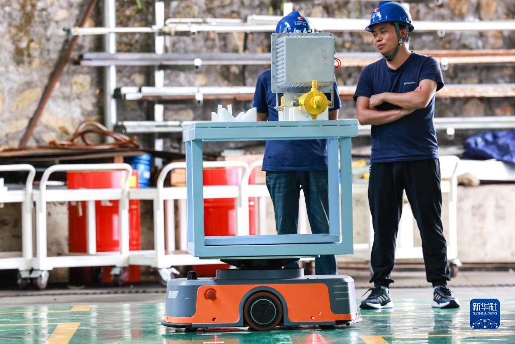 7月25日,工作人員在調試反射面激光靶標維護機器人。新華社記者 歐東衢 攝