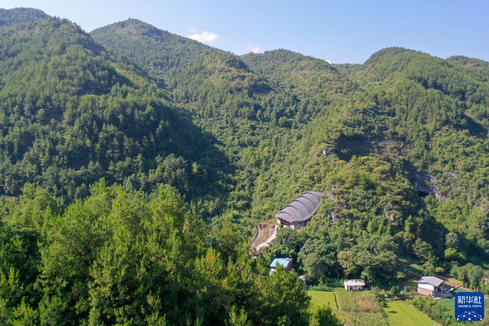 這是8月16日在重慶市巫山縣廟宇鎮拍攝的龍骨坡遺址考古發(fā)掘區(無(wú)人機照片)。新華社記者 唐奕 攝