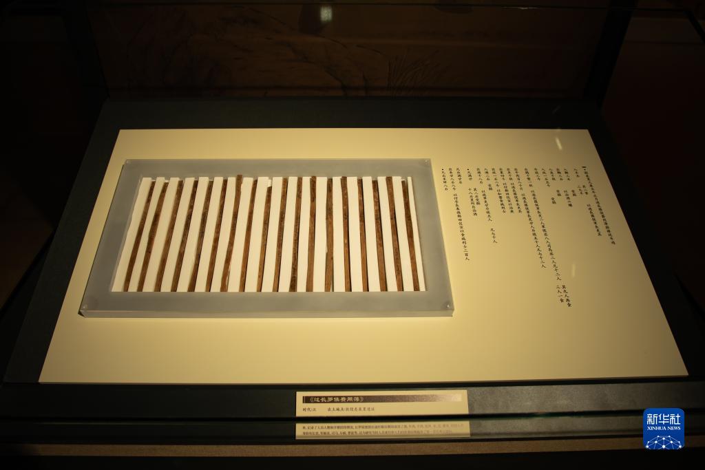 這是9月7日拍攝的甘肅簡(jiǎn)牘博物館展出的由18枚簡(jiǎn)牘組成的“過(guò)長(cháng)羅侯費用薄”。新華社記者 郎兵兵 攝