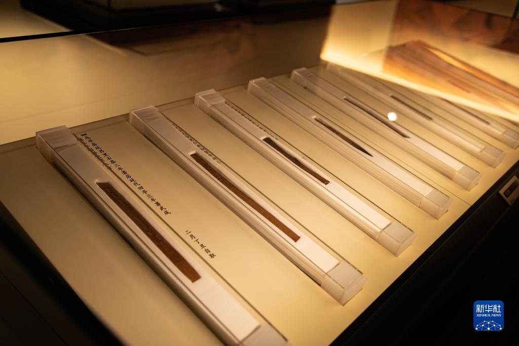 這是9月7日拍攝的甘肅簡(jiǎn)牘博物館展廳內的部分簡(jiǎn)牘文物。新華社記者 郎兵兵 攝