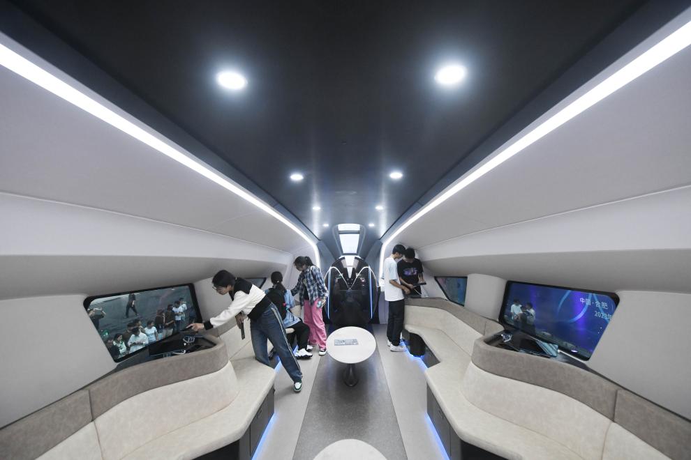 9月20日,在2023世界制造業(yè)大會(huì )上,觀(guān)眾近距離了解時(shí)速600公里高速磁浮交通系統。新華社記者 張端 攝