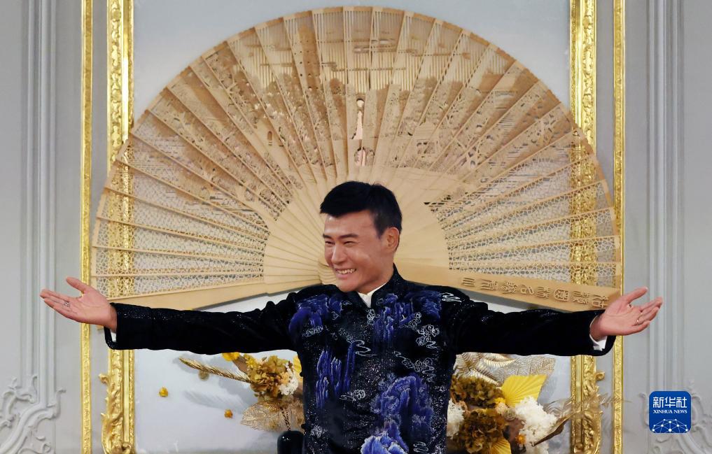 9月27日,在法國巴黎中國文化中心舉辦的“恭王府服飾秀”上,設計師勞倫斯·許向觀(guān)眾致意。新華社記者 高靜 攝