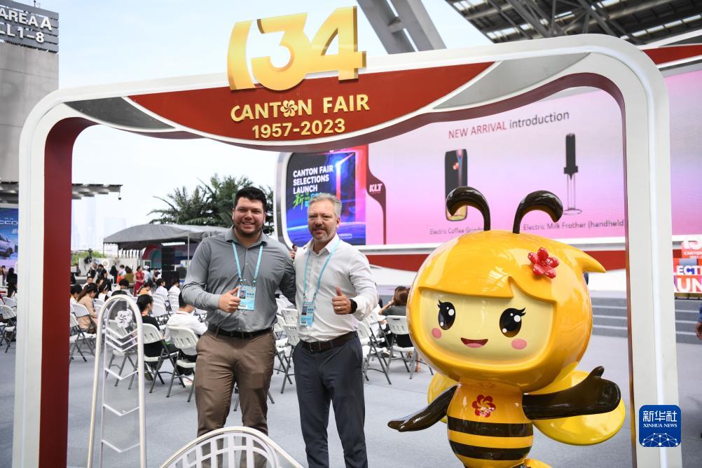 10月15日,來(lái)自巴西的采購商在廣交會(huì )上合影。新華社記者 鄧華 攝