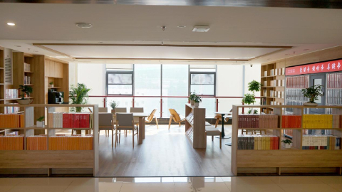 書(shū)屋位處一樓,一面臨窗,有較好的自然采光及外部景觀(guān),內部設置了閱讀區、沙龍分享區、會(huì )議交流區及茶歇區域,用于滿(mǎn)足讀者群眾自身的需求和喜好。