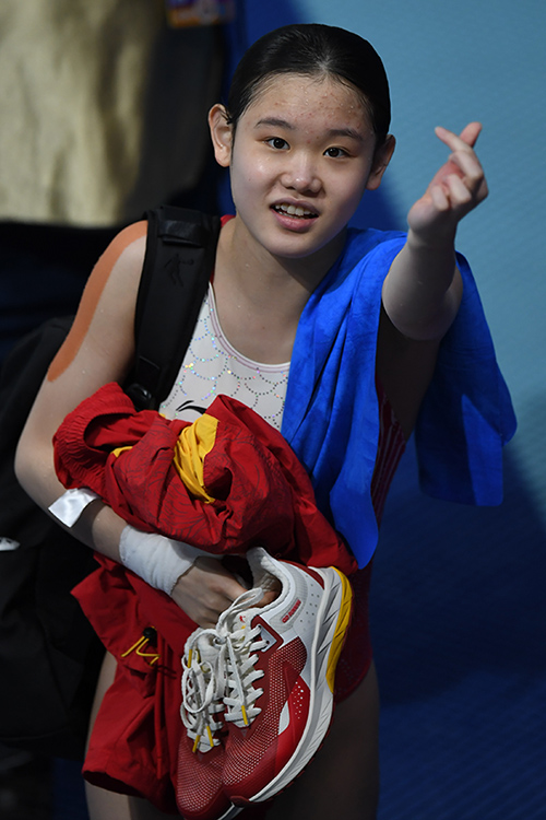 圖為全運會(huì )上張家齊在賽后比心慶祝